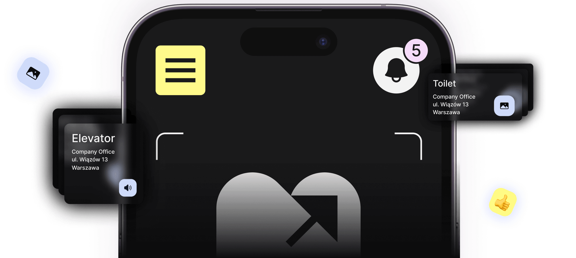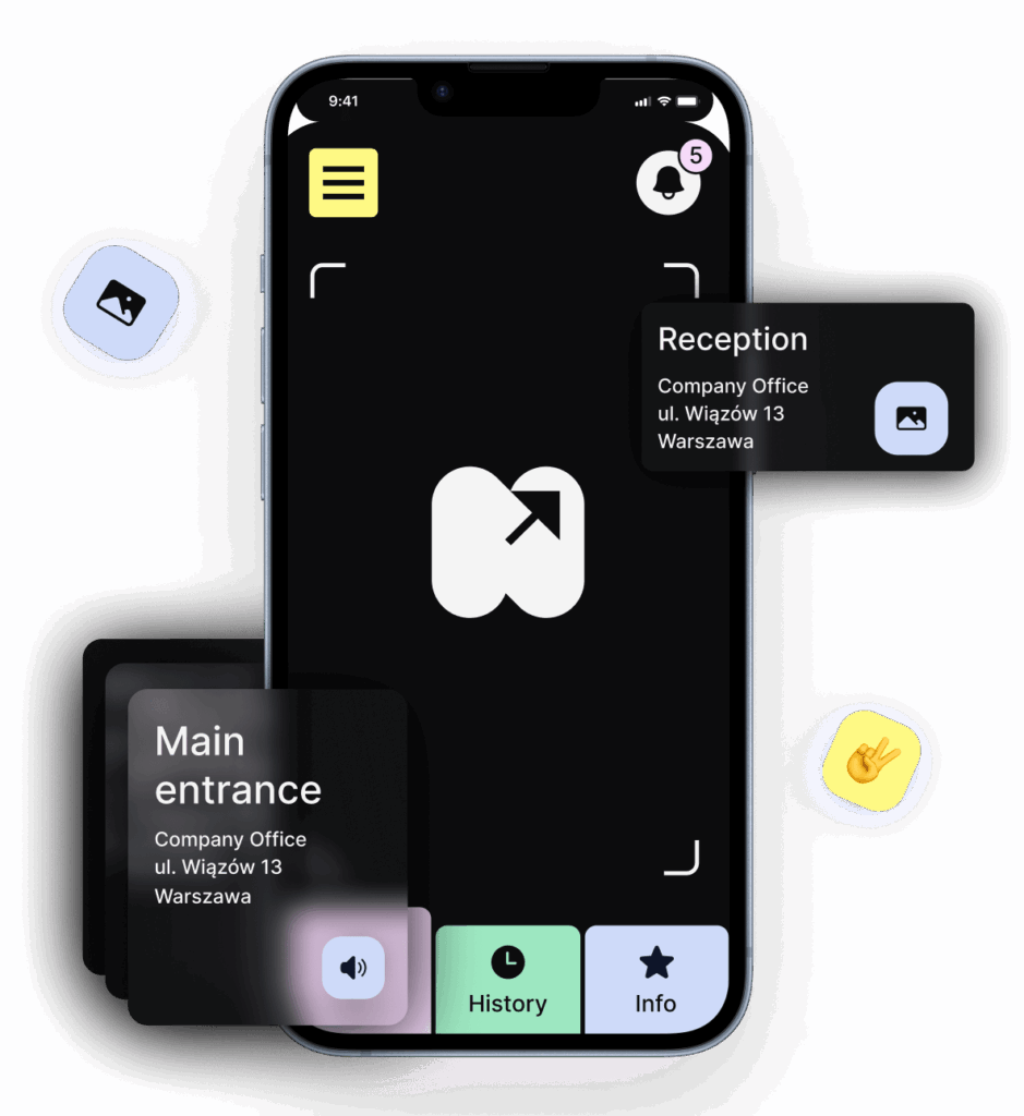 Inside, using the app and the camera on your smartphone, you can read the NaviStickers (graphic codes in the form of stickers) placed there, which will provide support and navigation in the new location.